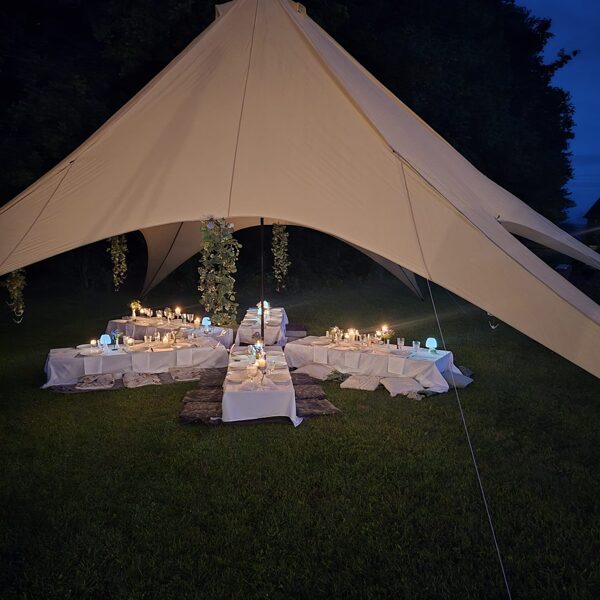 Baltā dzimšanas dienas ballīte zem zvaigžņu telts