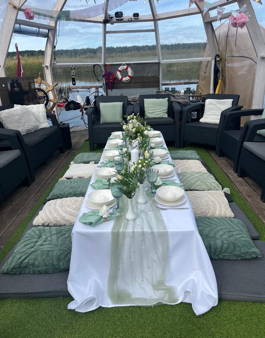 Sēdvietas uz mīkstiem spilveniem aicina uz nesteidzīgām sarunām, kopīgu maltīti un patiesu kopā būšanas prieku.