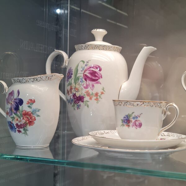 Priekšmeti ar viena stila dekoru “Bizbizmārīte” Porcelāns. Virsglazūras dekors: krāsas kl